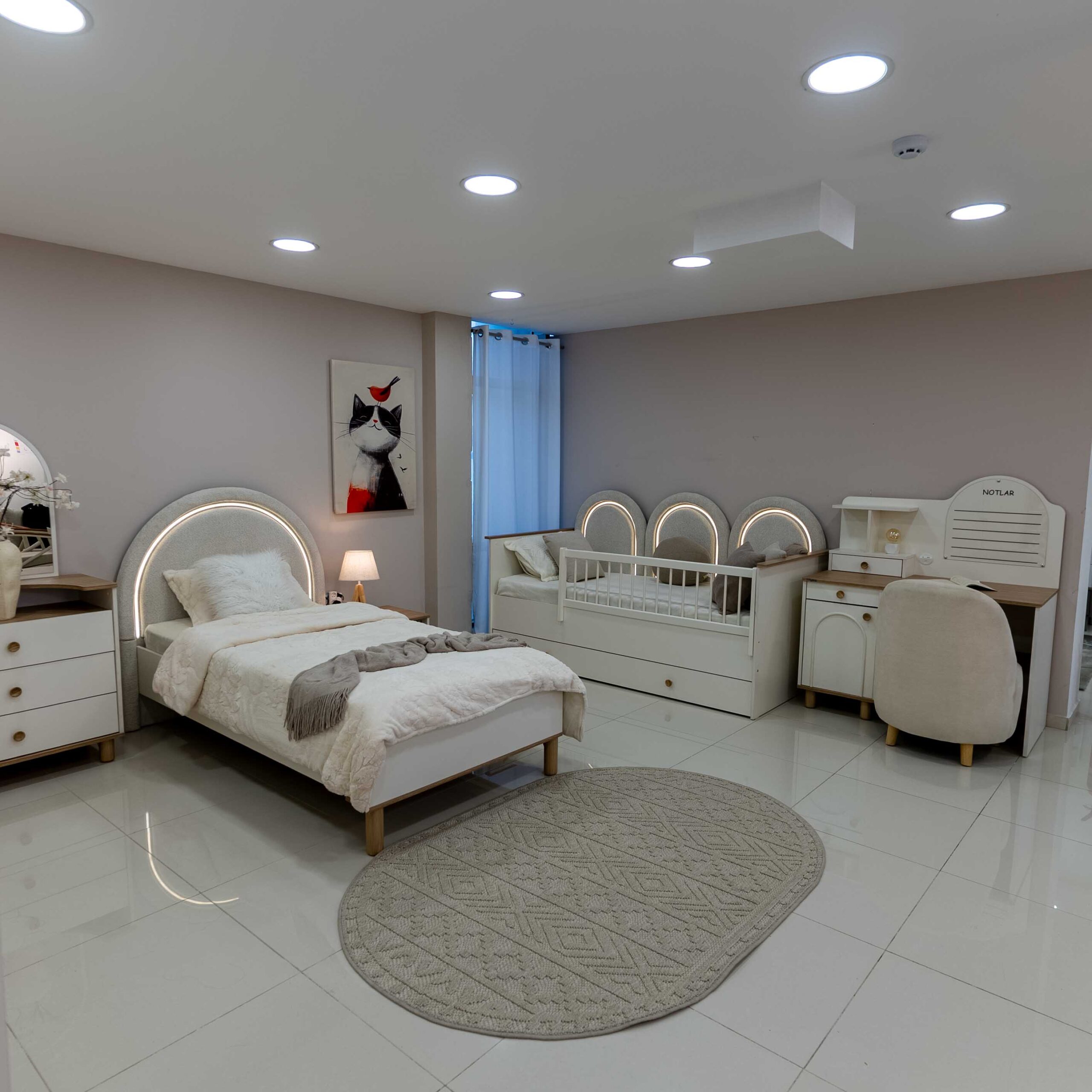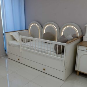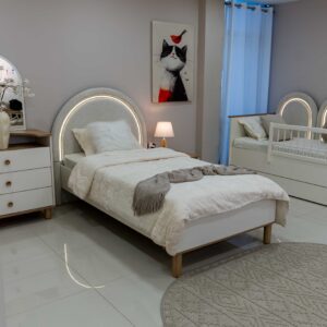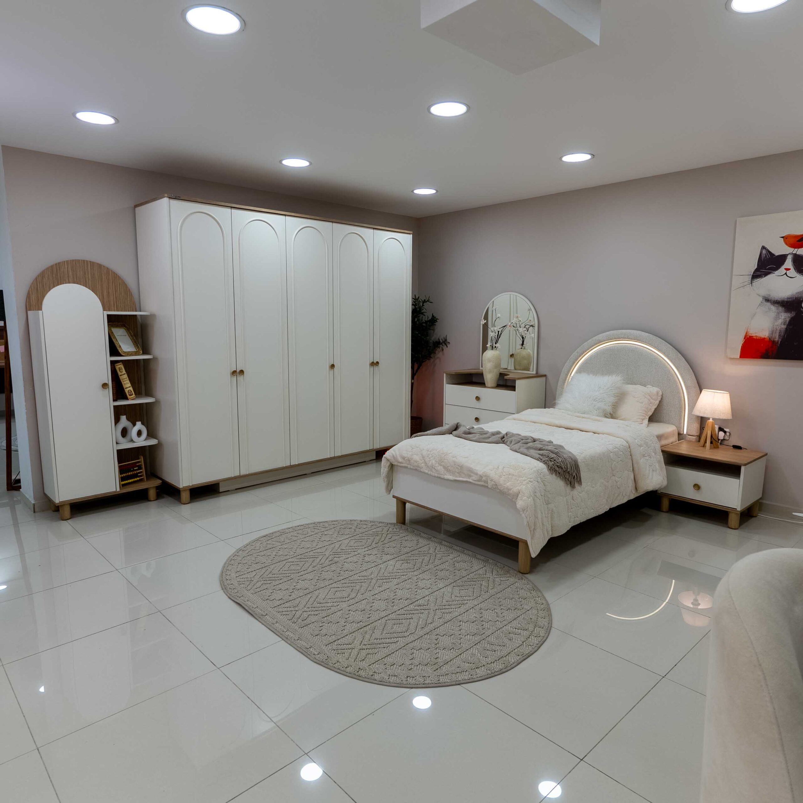 خزانة واسعة توفر مساحة تخزين ممتازة، مع سرير عملي وتصميم مريح مناسب للاستخدام اليومي