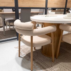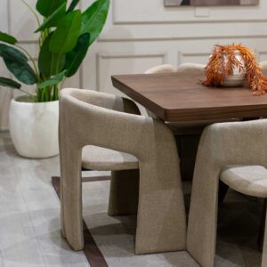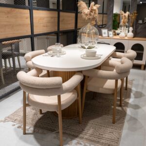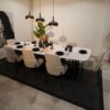 سطح رخامي فاخر مقاوم وسهل التنظيف كراسي مريحة مبطنة بتفاصيل ناعمة ولمسة فخمة قاعدة قوية وثابتة لضمان المتانة,مثالية للتجمعات العائلية والضيافة اليومية