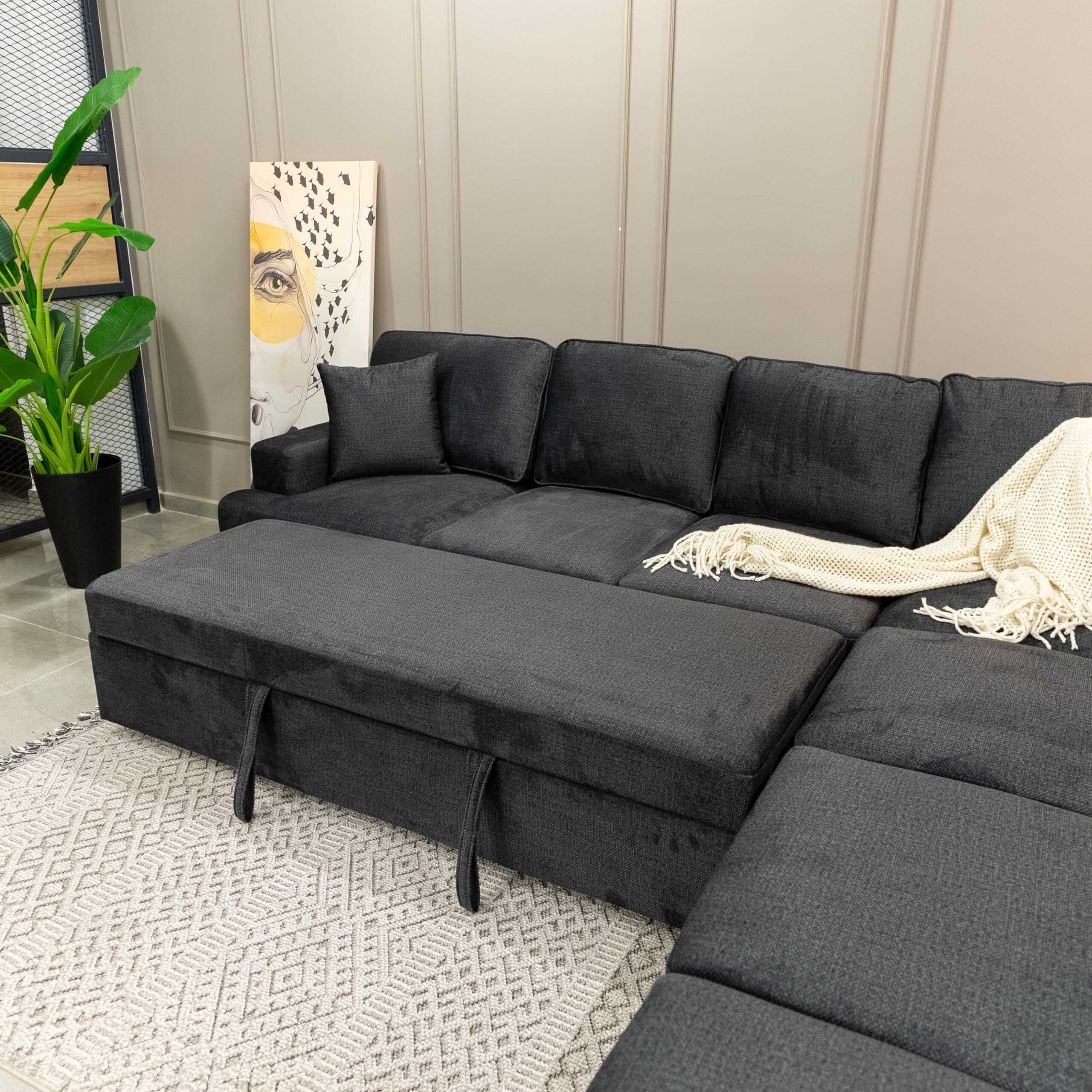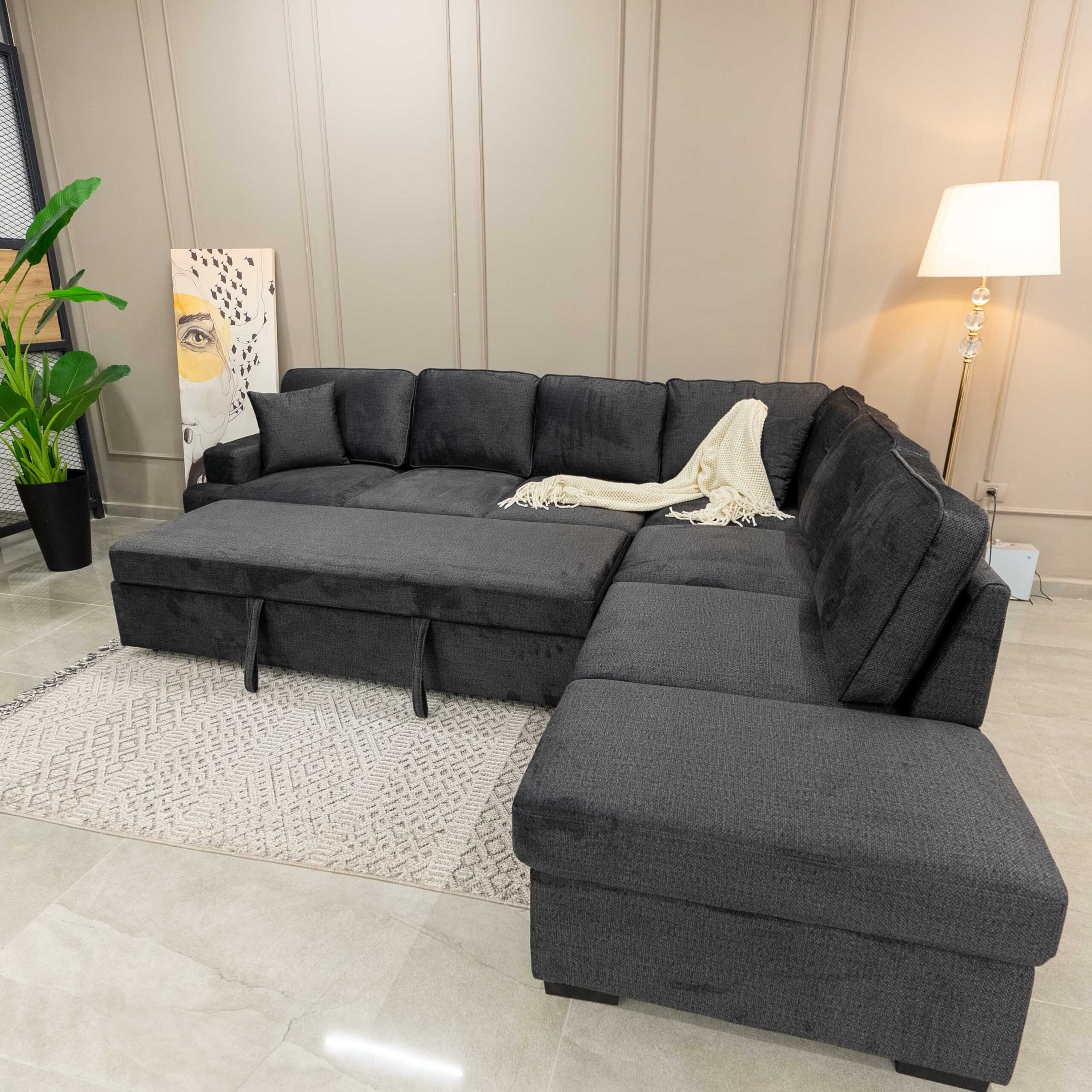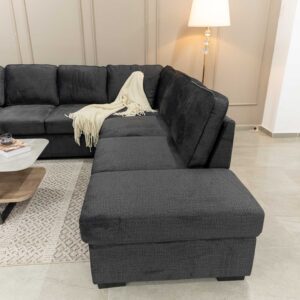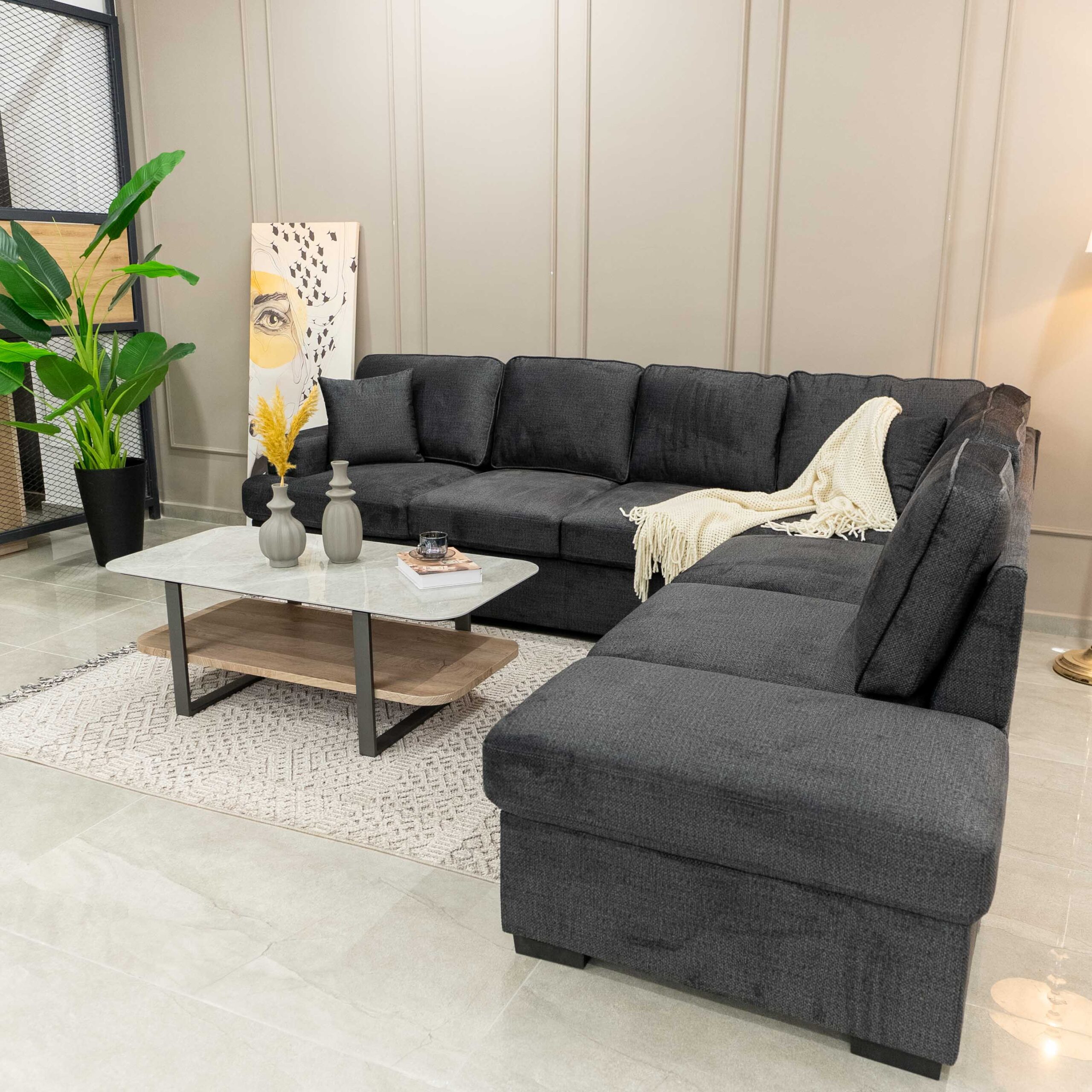 طقم كنب زاوية بتصميم عصري ولون رمادي أنيق، يعطيك راحة ومساحة مثالية للاستخدام اليومي