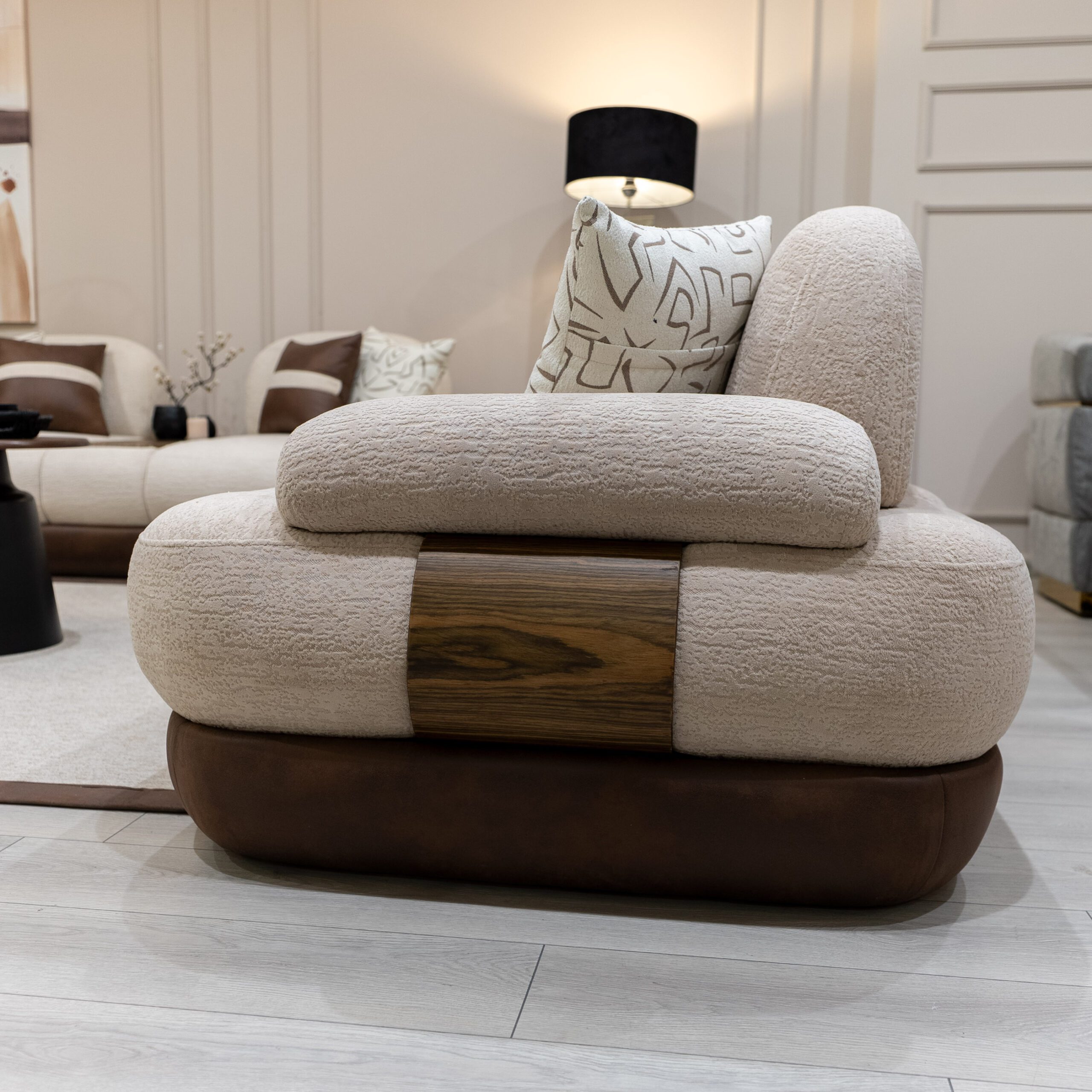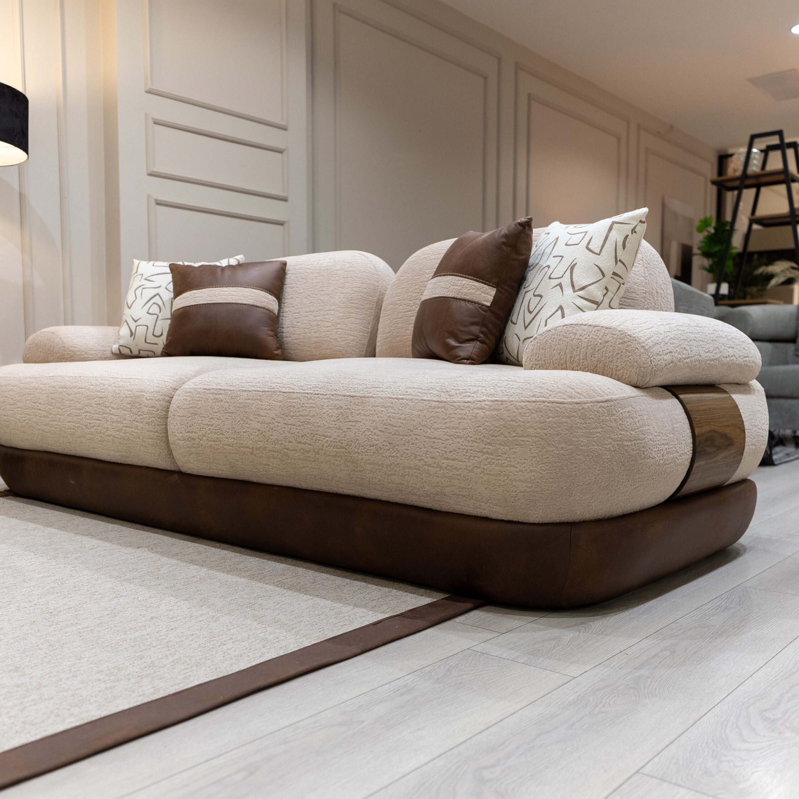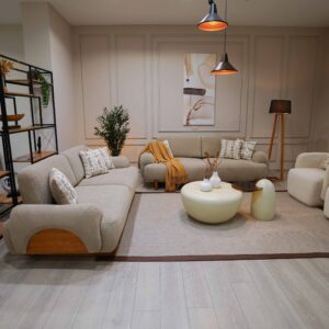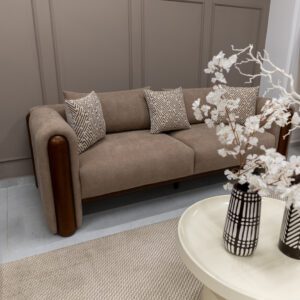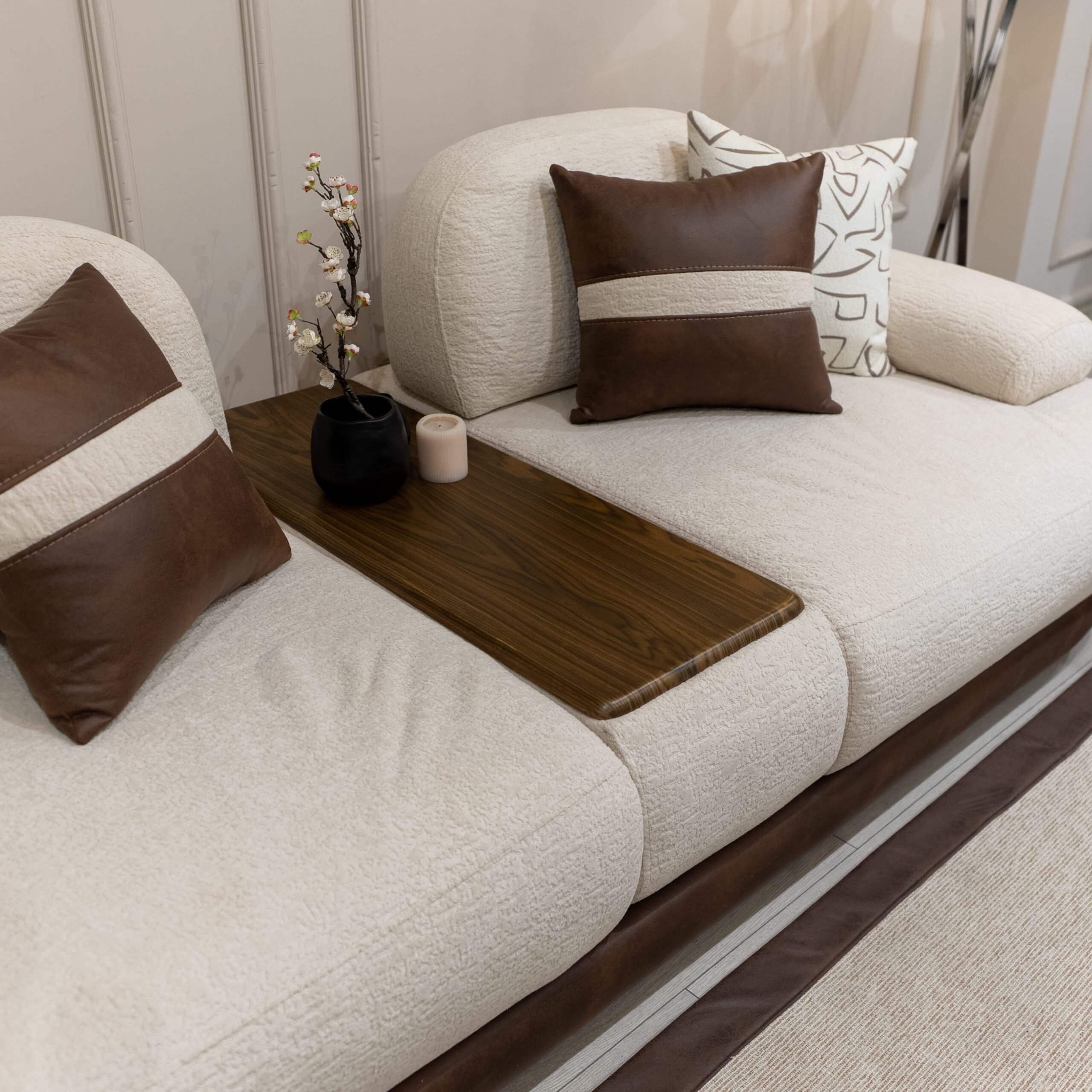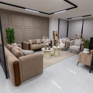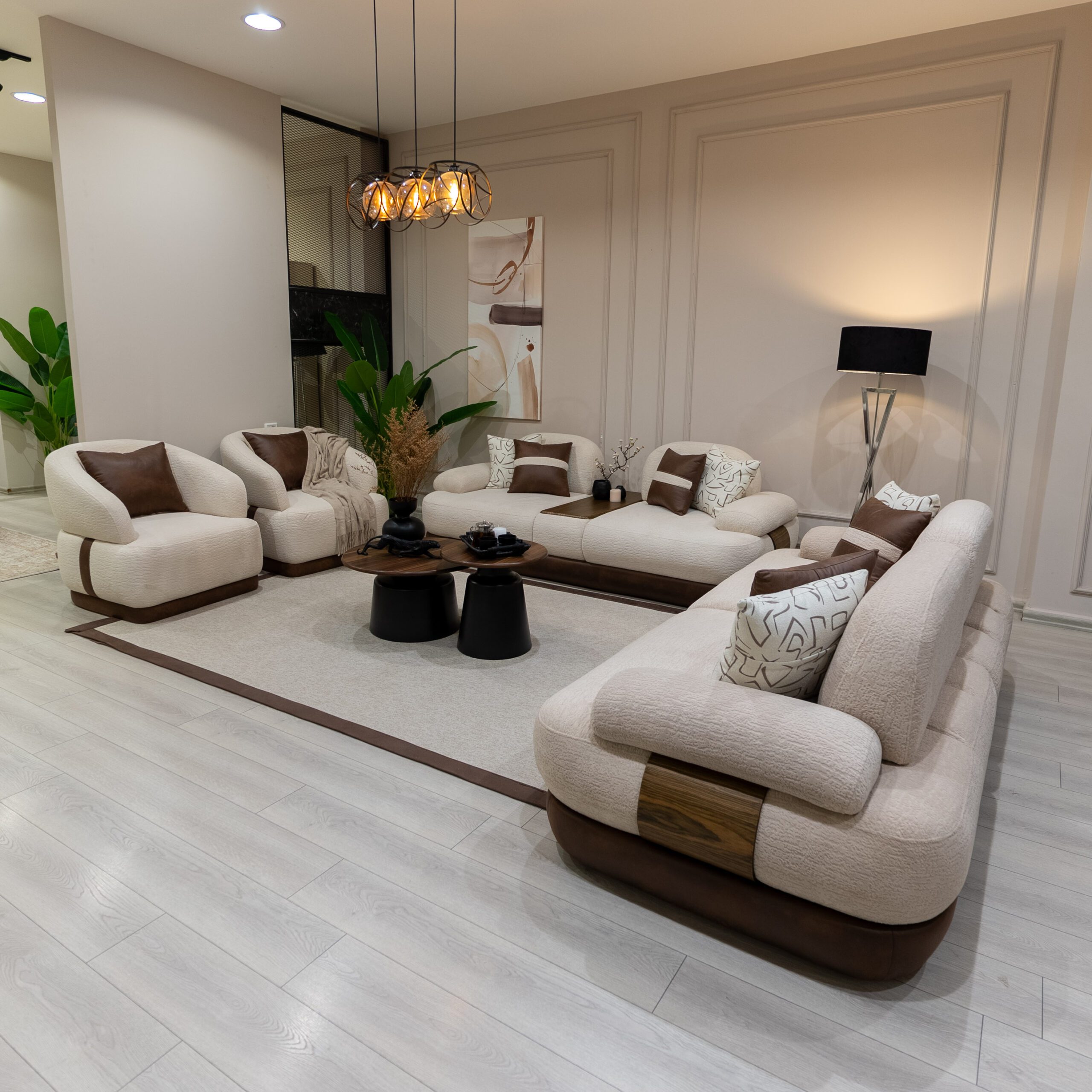 طقم كنب يجمع بين الراحة مع الأناقة الهادئة,لون كريمي دافئ بلمسات بنية فخمة ,صناعة مصرية,خشب زان متين وقوي ,تصميم ناعم يملأ المكان دفئاً ورُقياً