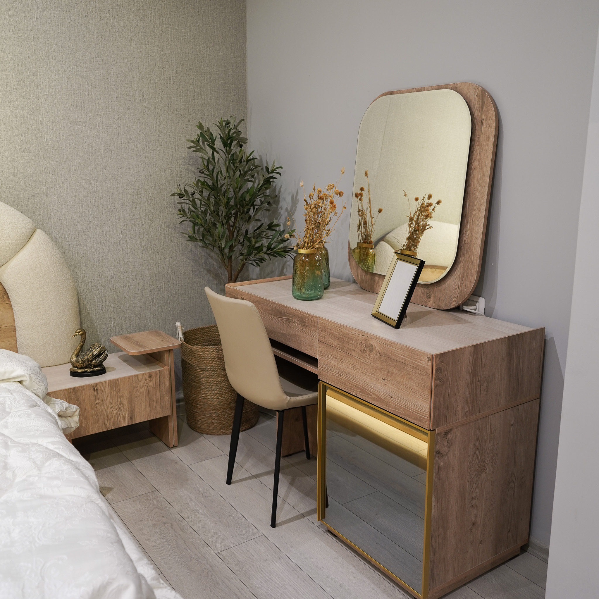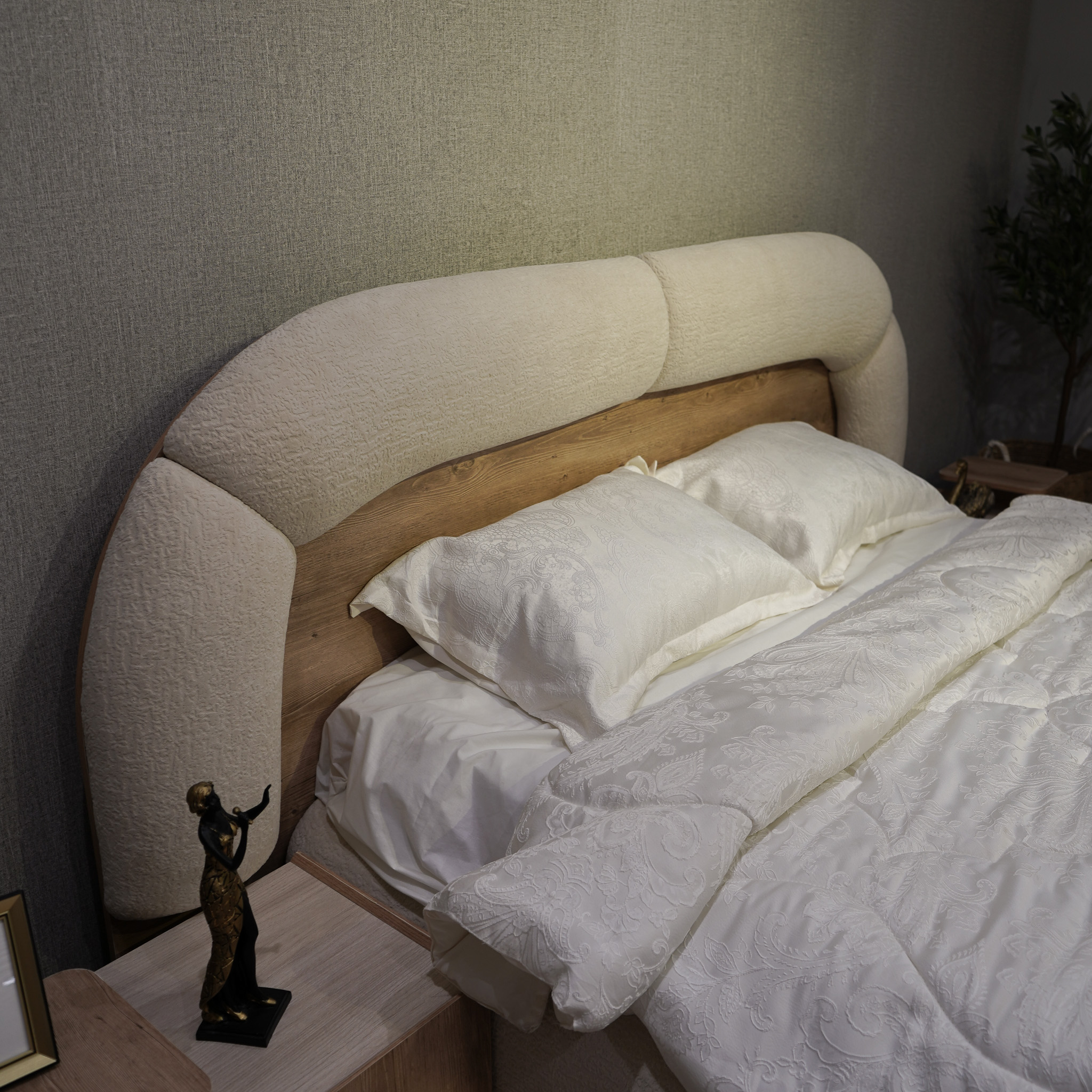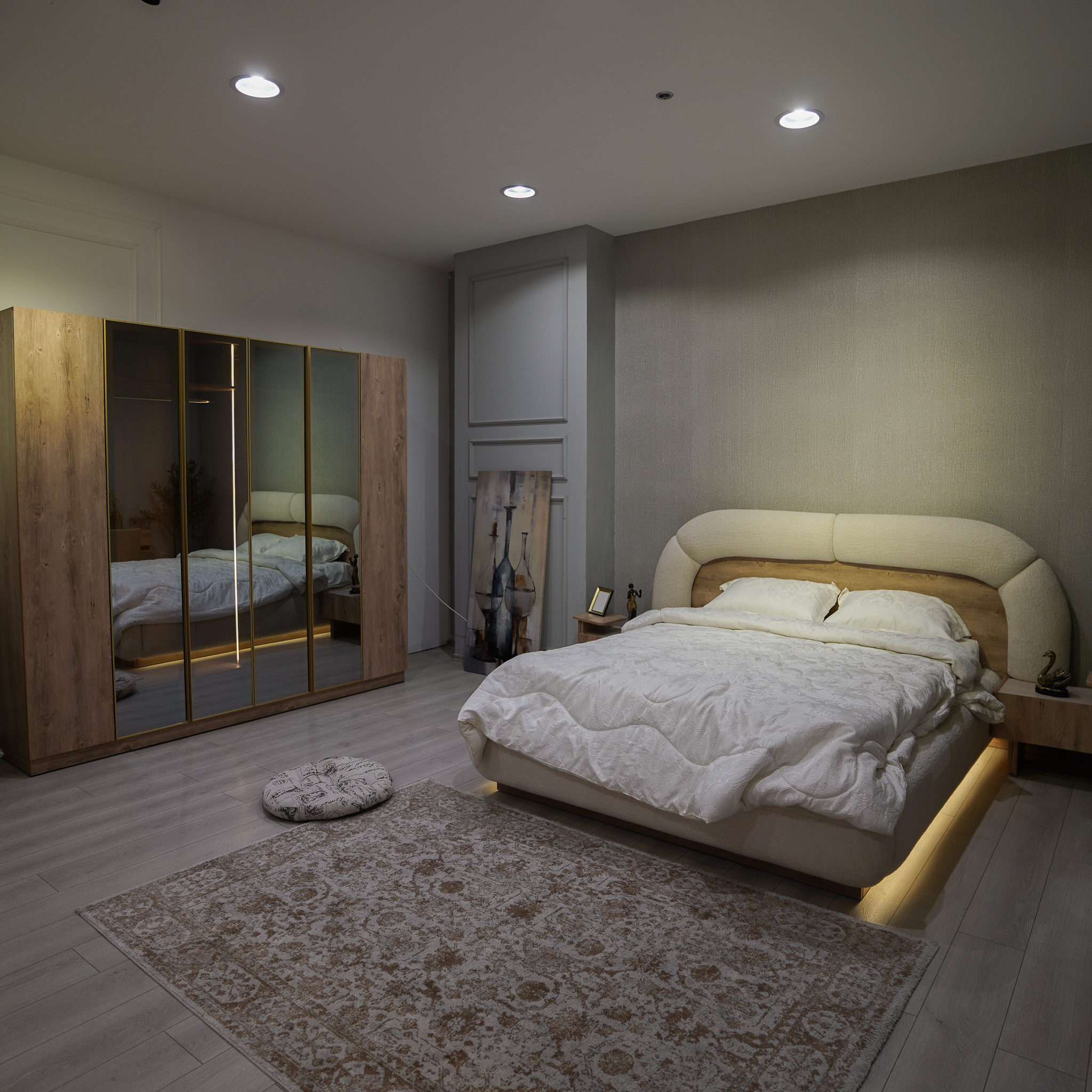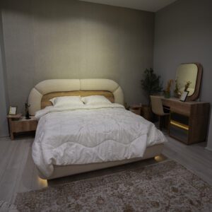 غرفة نوم بتصميم عصري أنيق , صناعة مصرية ,خشب كونترا عالي الجودة ,إضائة مخفية أسفل السرير تُضيف لمسة فخامة